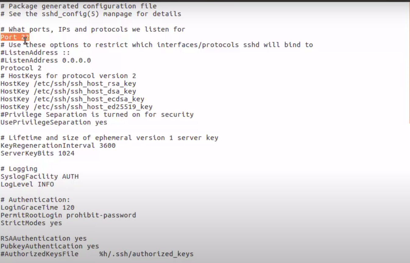 5.If you want to change the default port on which SSH works then you need to just change this port into a special file .Type command : $sudo nano /etc/ssh/sshd_config