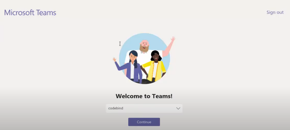 11. It will load Microsoft Teams in your Ubuntu operating system. After that, it will be logged in with your Microsoft account. If you have any teams, you can choose your team under Welcome to Teams. If you don’t have any team then click on Continue. Your Teams will start successfully. Here you can see the option called Create a Team. If you are a first-time user, it will guide you through every step.