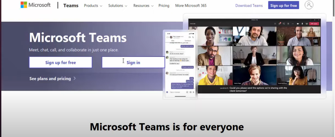 3. Once the link opens, you will be able to see Download Teams in the top right corner.