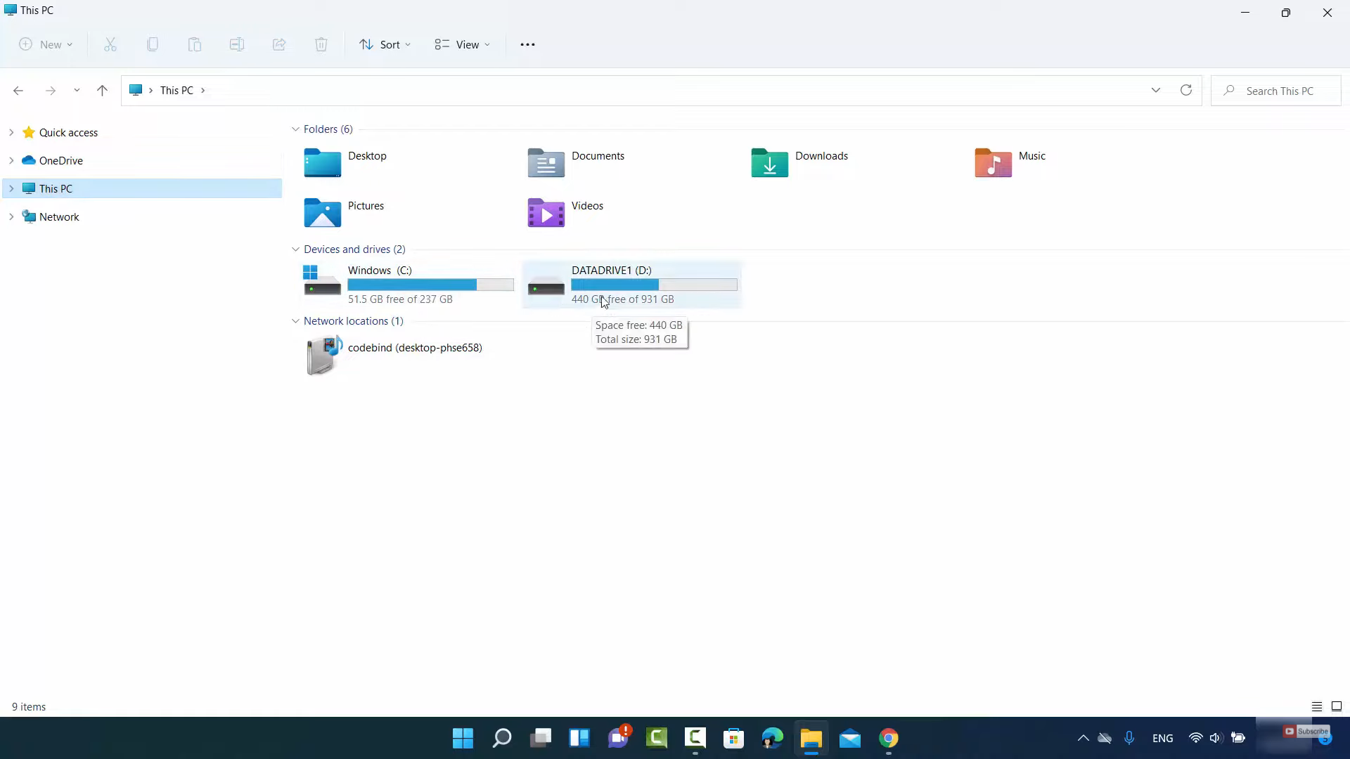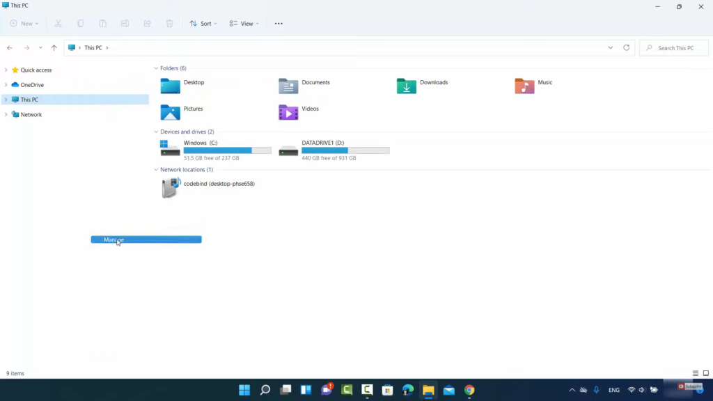 1. To start this, open your File Explorer. Then click on This PC. As you can see, I have two 2 drives here. One is called Windows (C) and the other one is called DATADRIVE1 (D). I am going to change the drive letter for Datadrive1 from D to something else. Let’s say E.