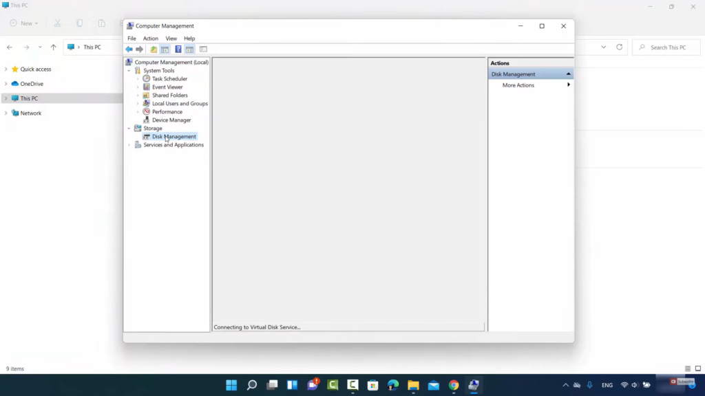 4. It will open a computer management window. Under Storage, click on Disk Management