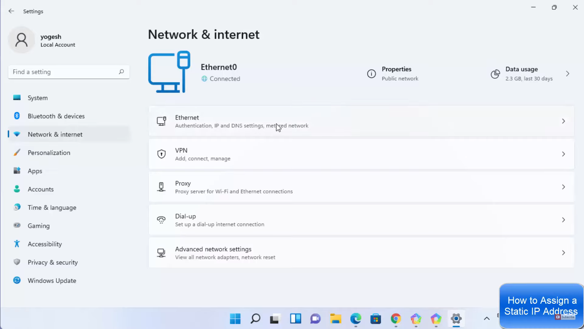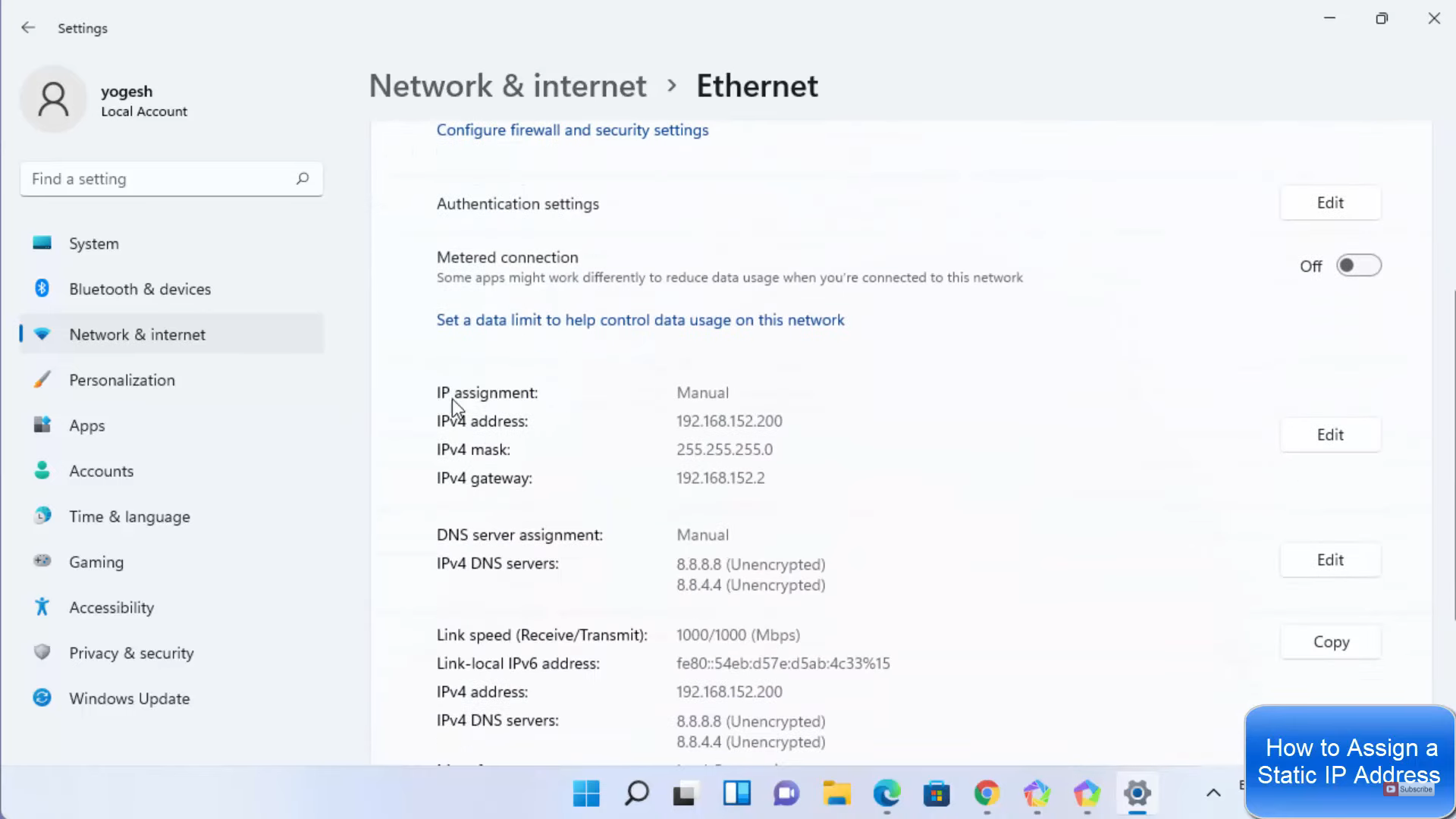 These are the steps for assigning a static IP address to your Windows 11 Operating System.