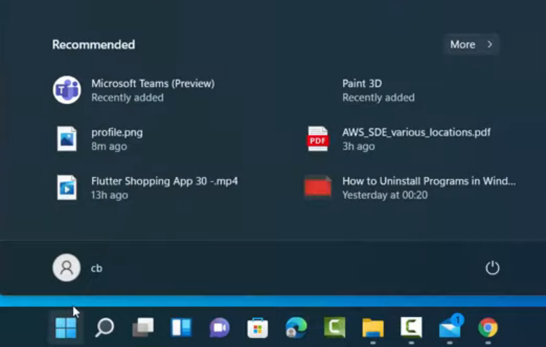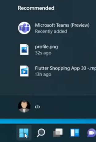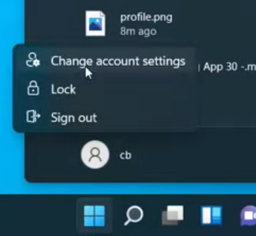 6. When you close the settings window and click on the Windows icon in the taskbar, you can see the profile picture of your account.