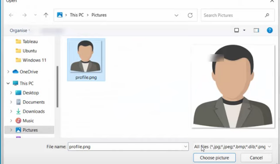4. For choosing the file, click on Browse Files. Now you can select the file. Click on choose picture. It will add the profile picture. on your windows 11 operating system.