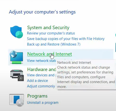 2. Click on the Network and Internet option.