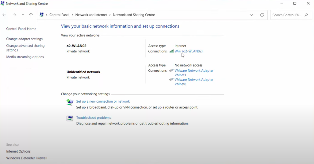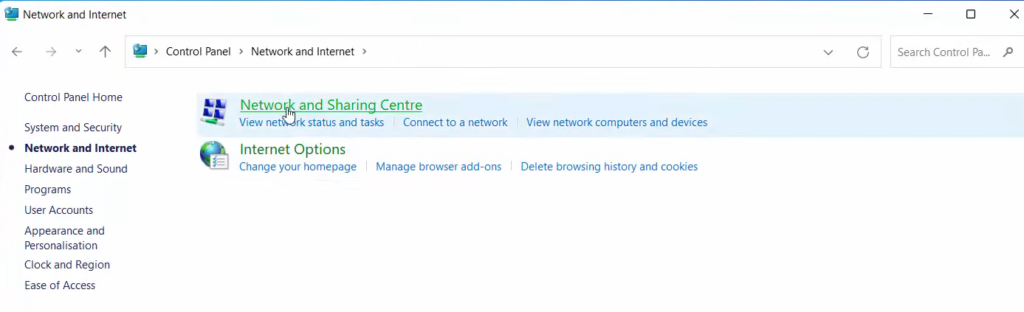 3. Click on the first option Network and sharing center.