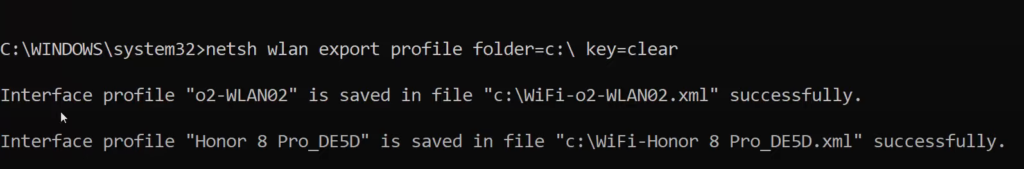 13. Enter the first command in the command prompt and press enter. It will display all the networks that you have ever connected to. Right now I have two networks. To recover the password of these two networks, you need to enter the second command and press enter.