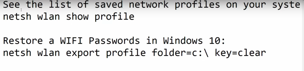 12. In the command prompt, you need to provide two commands which are provided under the image below. This will show all the lists of networks that you have connected.