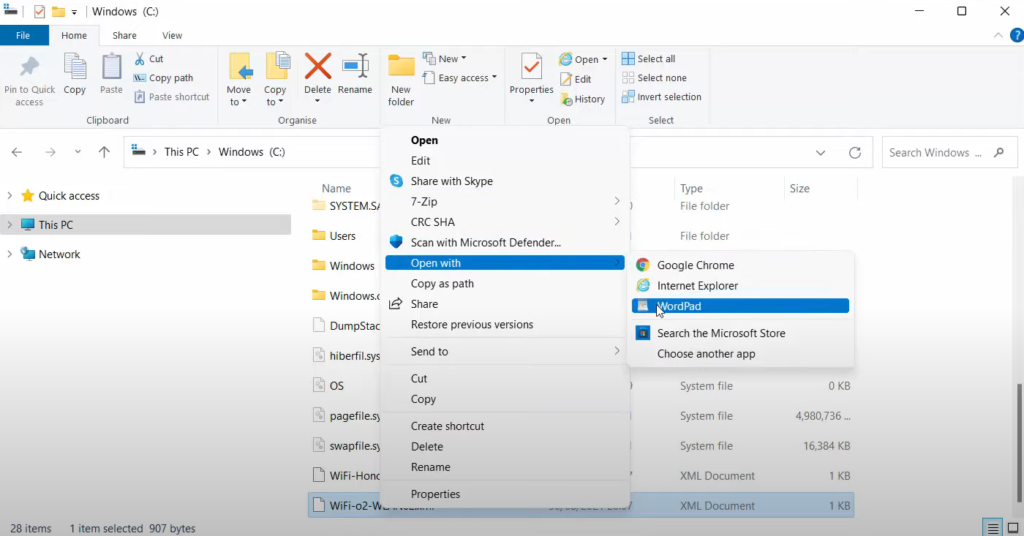 16. If you want to know the wifi password, then right-click on it. And click on Open with. Open this XML file in Wordpad. You can open it with any application.