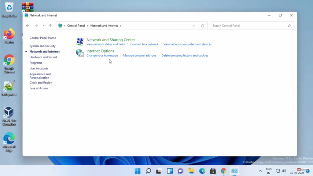 2. Once the app opens, click on view by Category. Then, click on Network and Internet option.
