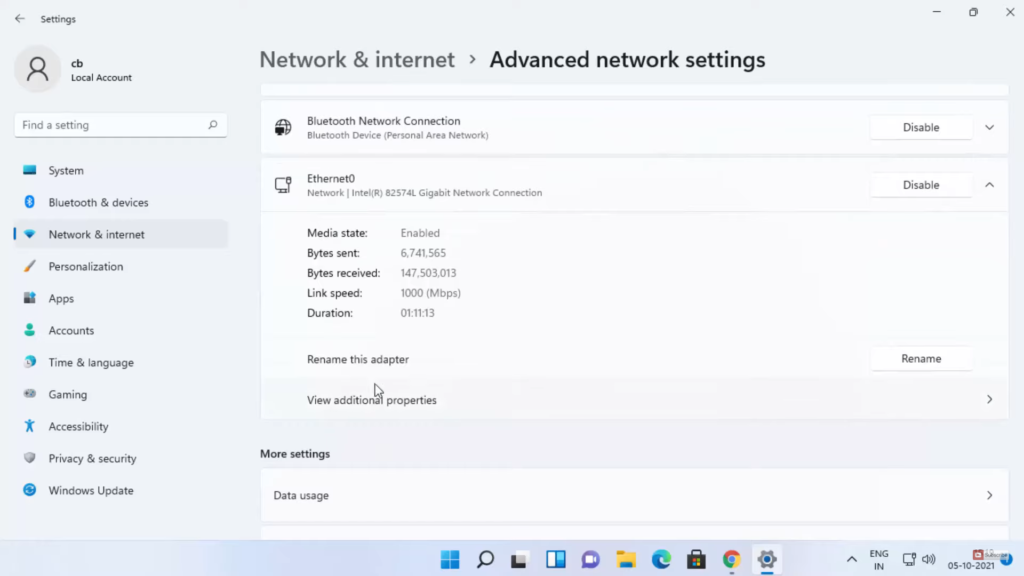 4. It will show your Internet connection. In my case, I am connected with a LAN cable so it shows ethernet. If you are connected with Wifi, then it will show wifi option here. Whatever option you see in the connection at the top, you need to click on that.