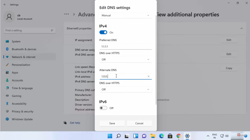 14. For changing it to some other DNS server, you need to click on Edit. Now, I am going to Cloudflare’s server address. And then, you need to type the primary and secondary DNS of that server. Then, click on Save.