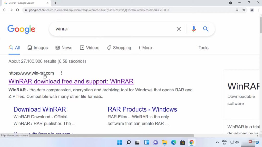 1. Open a web browser of your choice and search for WinRAR. Click on the first link.