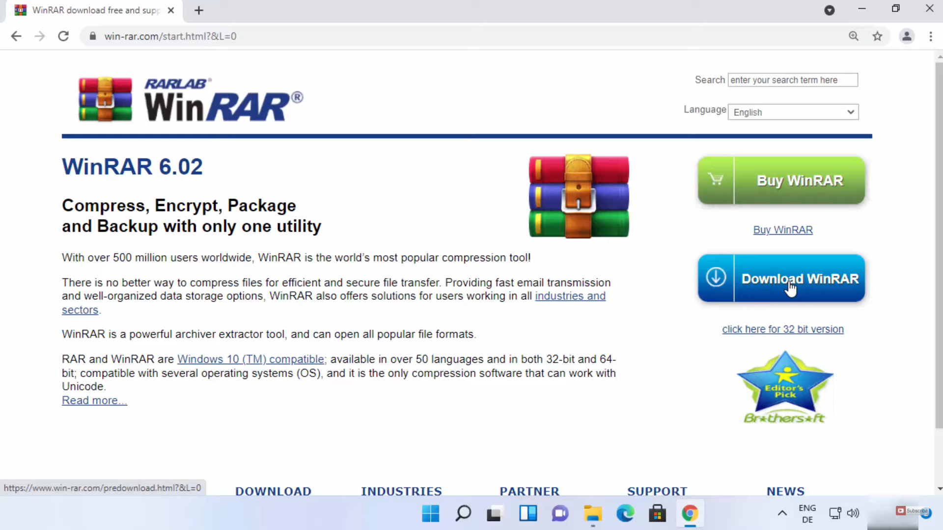 1. Open a web browser of your choice and search for WinRAR. Click on the first link.