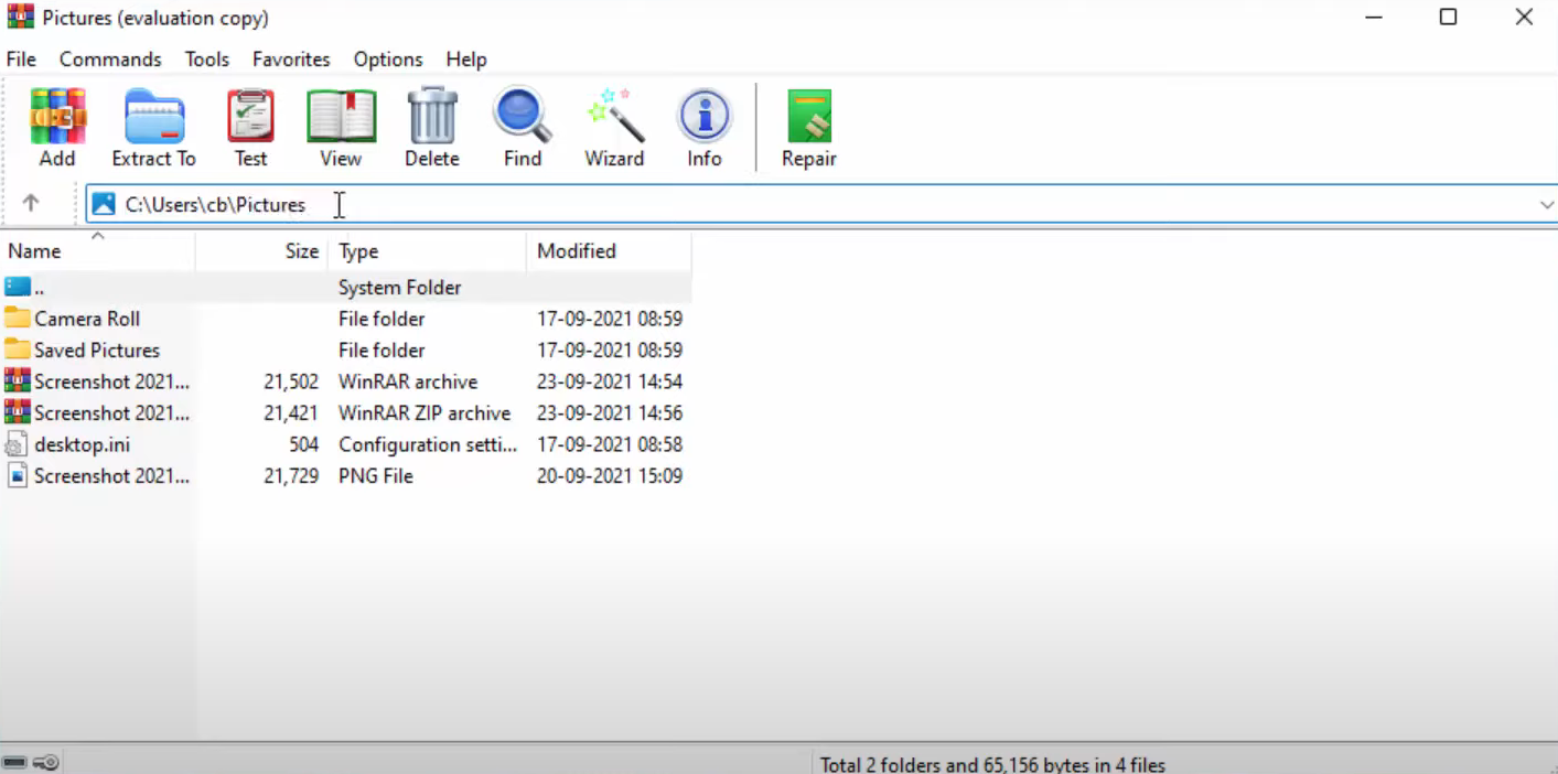 16. If you open WinRAR using the desktop shortcut icon, it will open the last known location. You can change the folder location using the dropdown menu as well.