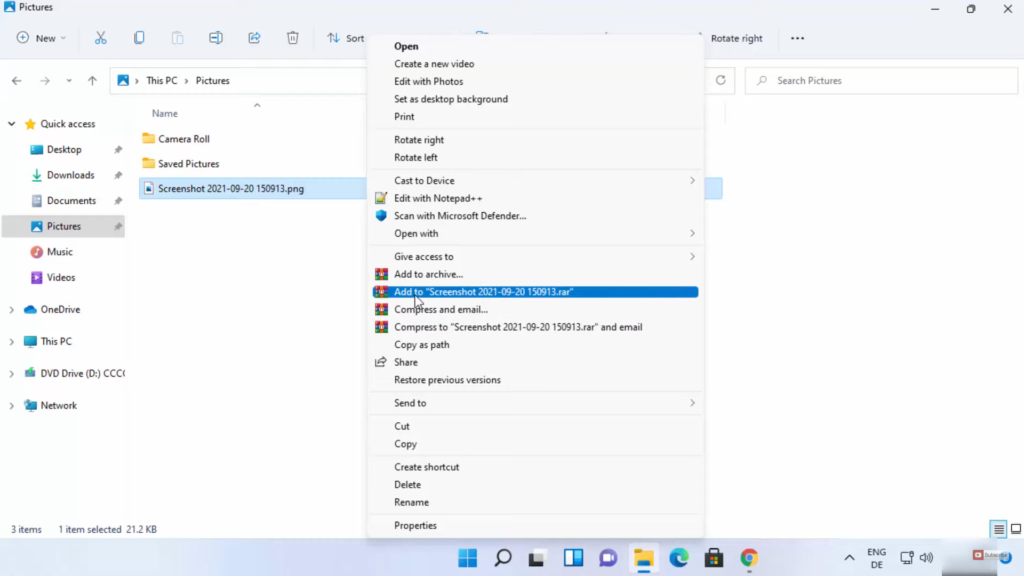 12. For creating the Zip file, right-click and click on Show more options and then click on the first option Add to archive.