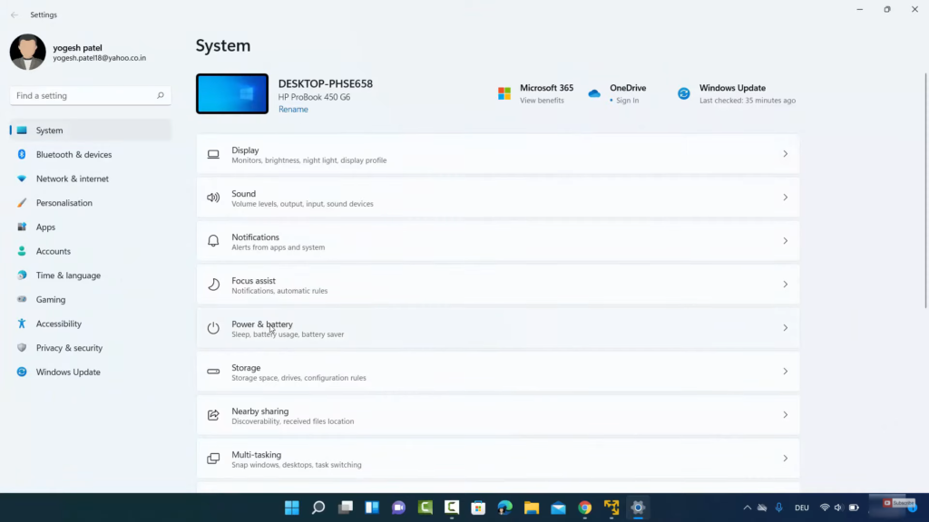 2. In the settings app, click on System on the left-hand side. On the right-hand side, you will be able to see an option called Power & battery. Click on that option.