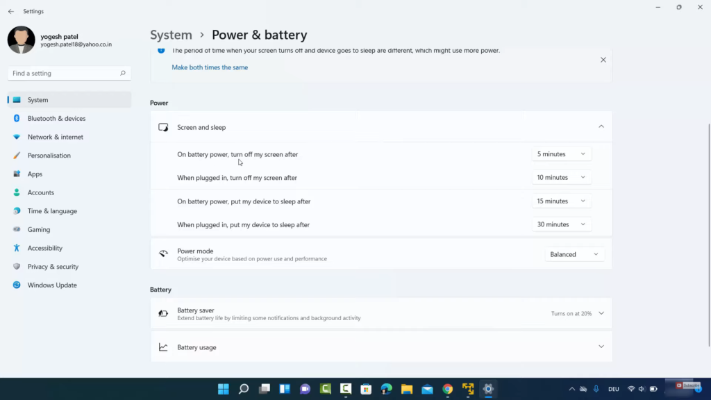 3. Click on the Screen and sleep option and expand that. Here, you can change the minutes based on your choice.